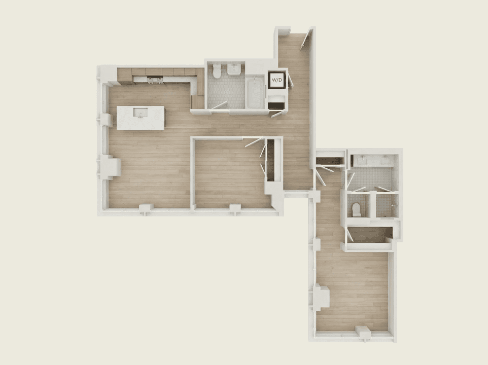 A bright, well-balanced two-bedroom residence designed for modern city living. The open kitchen flows seamlessly into the living and dining area, creating a natural center for everyday life, entertaining, and gathering. The primary bedroom is set apart for privacy, with an en-suite bath and walk-in closet, while the second bedroom offers flexibility for guests, work, or additional living space. Clean lines, warm finishes, and an efficient layout make the home feel calm, functional, and easy to live in.
